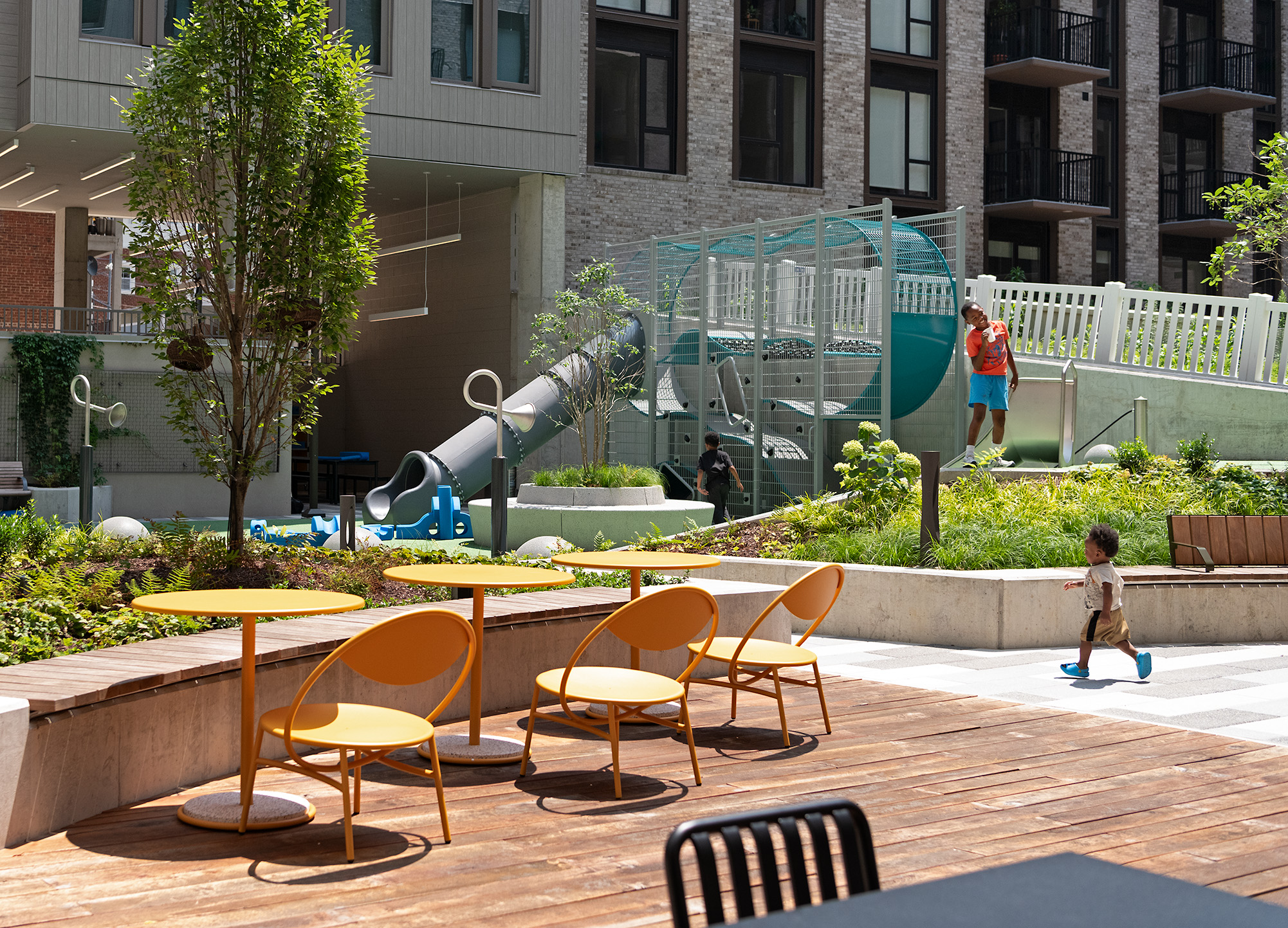 Designed by Eric Colbert & Associates and built by John Moriarty & Associates, the eight-story building features a range of community amenities including a courtyard with playground, community room, learning library, fitness center, rooftop event space and patio. Residents also have access to free, high-speed Community WiFi in their apartments and all common areas provided by Younity.